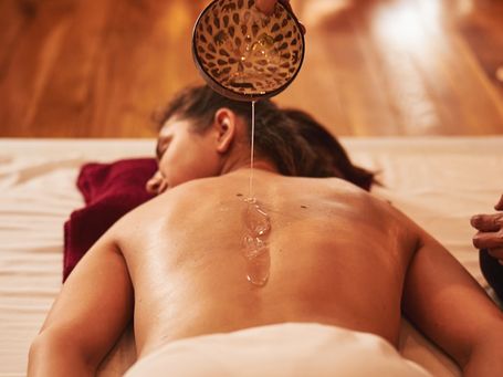 Die Abhyanga Massage, eine jahrhundertealte indische Tradition, verwöhnt Körper und Geist mit liebevollen Berührungen und warmem Öl. Diese ganzheitliche Erfahrung fördert nicht nur die Entspannung der Muskeln, sondern auch das seelische Wohlbefinden. Tauche ein in die Welt der Achtsamkeit und spüre, wie die sanften Bewegungen und das duftende Öl harmonisierend auf deine Sinne wirken. Gönn dir eine Auszeit vom Alltag und erlebe die heilende Kraft der Abhyanga Massage. Zum Ende hin wird ein kleiner Stirnguss angedeutet.
